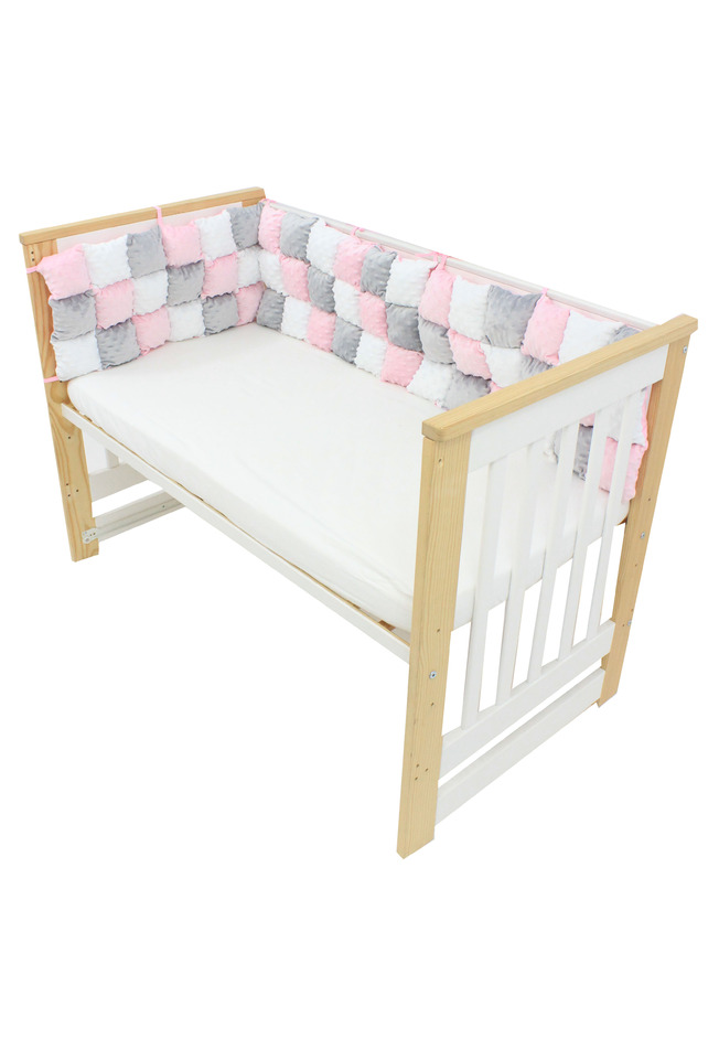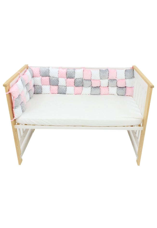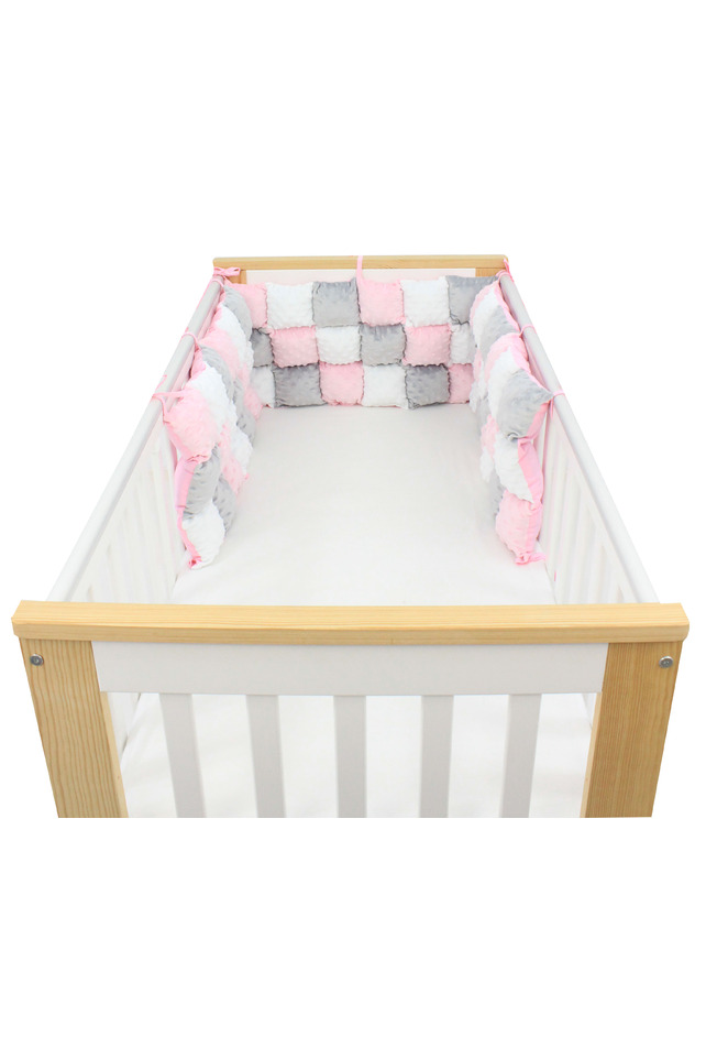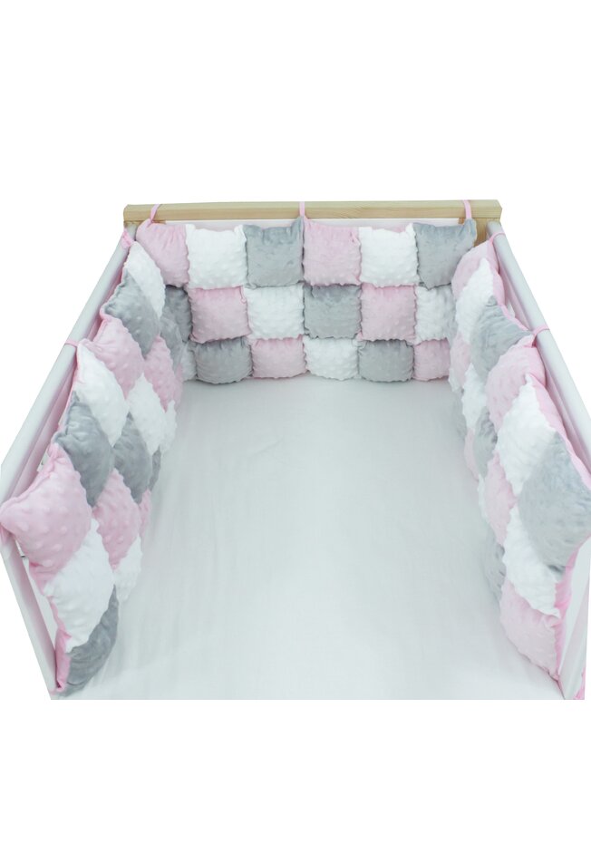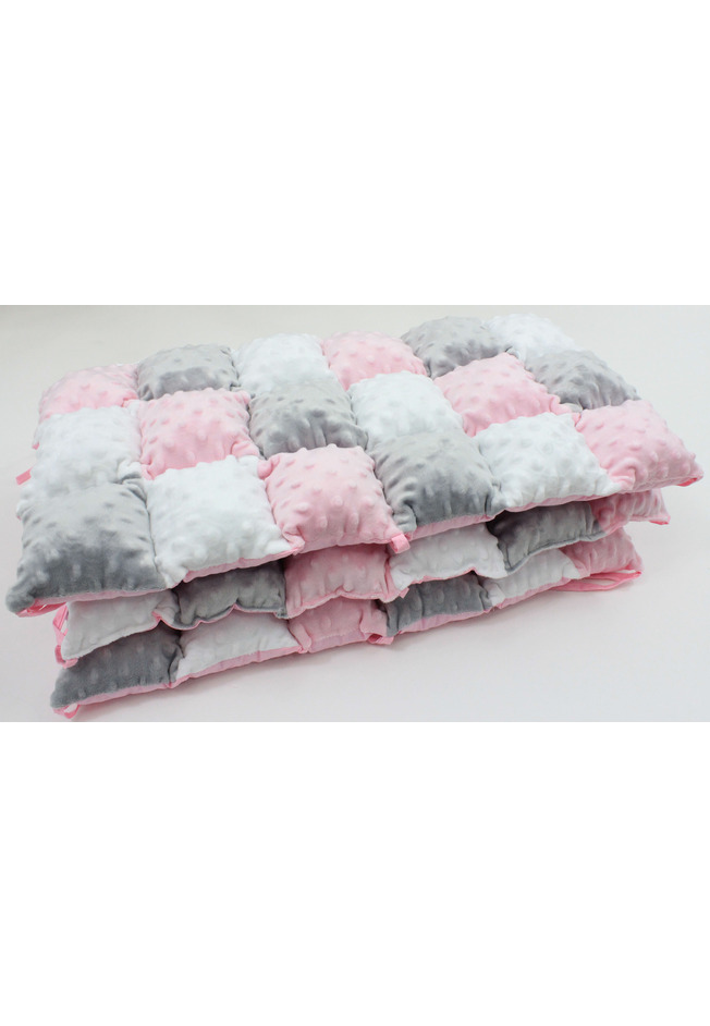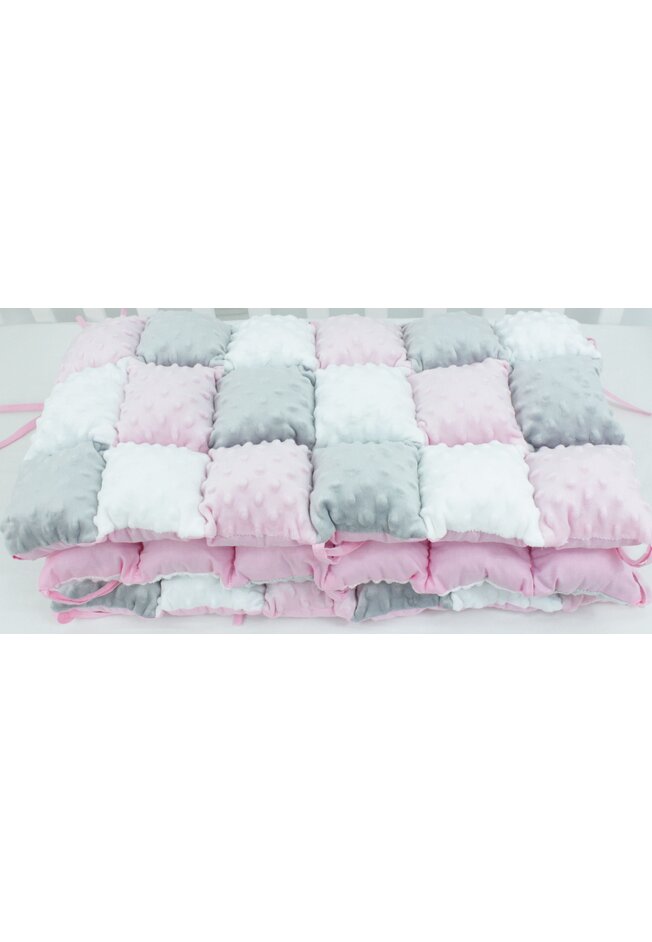 Set 3 aparatori pufoase, minky si bumbac, roz cu gri, 60x30 cm