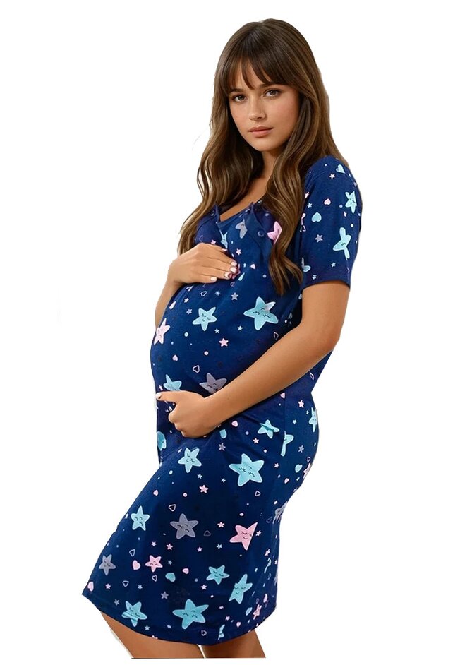 Camasa alaptat, bumbac, Miruna, bleumarin cu stele