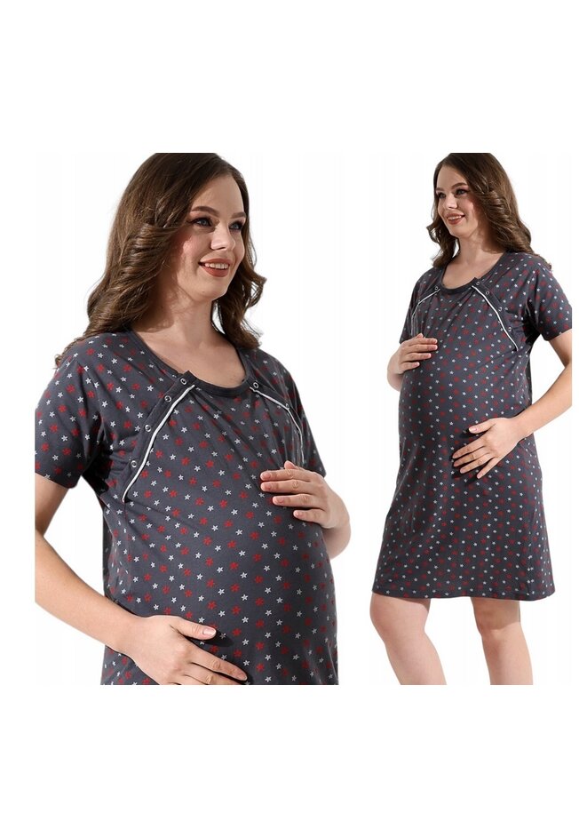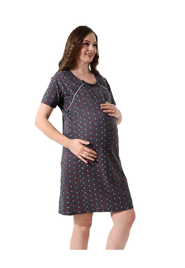Camasa pentru alaptat, Nadia cu stele, bumbac, gri