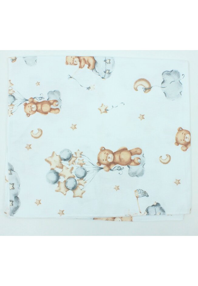 Cearceaf patut, Prichindel, Urs cu baloane, flanel bumbac, multicolor, 120x60 cm