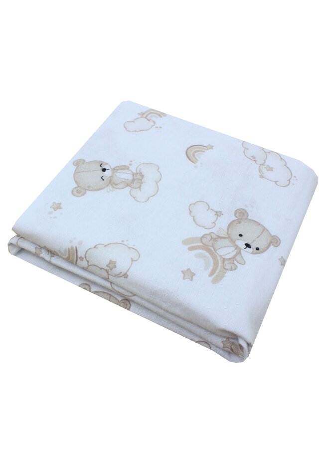 Cearceaf patut, Prichindel, Ursulet pe norisor, flanel, crem, 120x60 cm