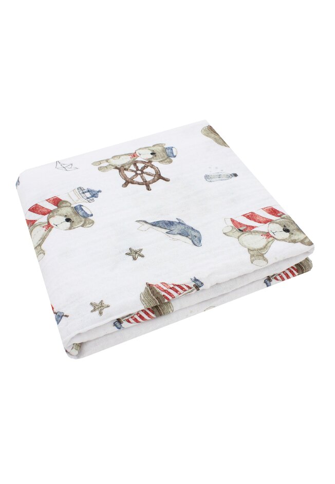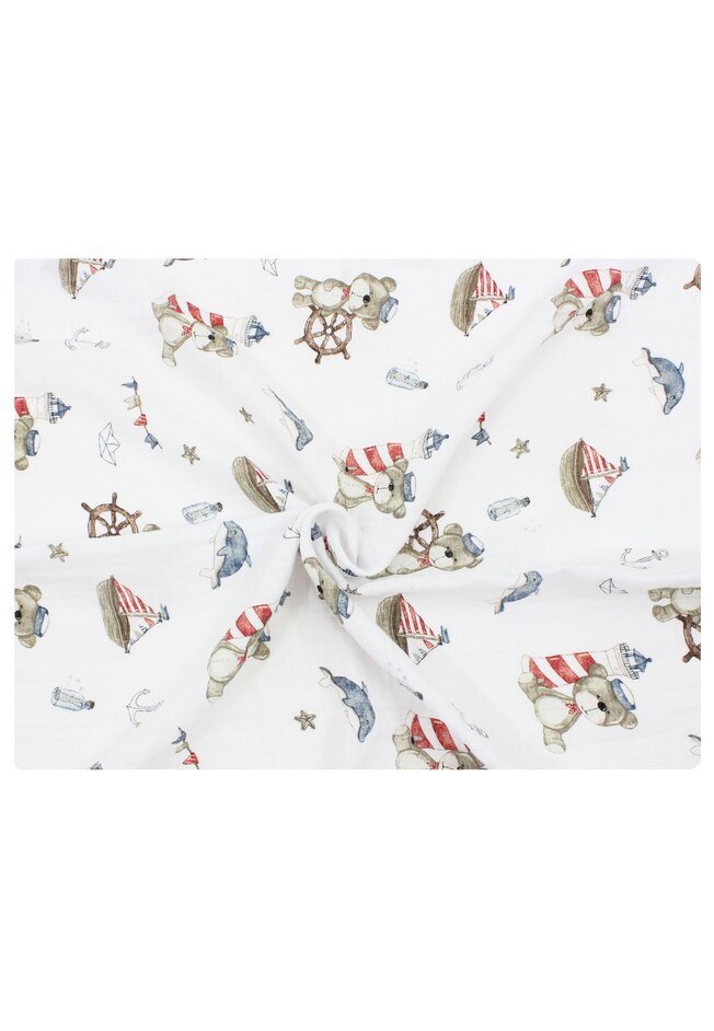 Cearceaf Prichindel, muselina, Ursuletul marinar, alb, 120x60 cm
