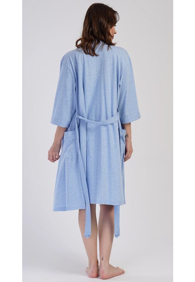 Halatul are maneci 3/4, este placut la atingere si se leaga in talie cu ajutorul unui cordon.