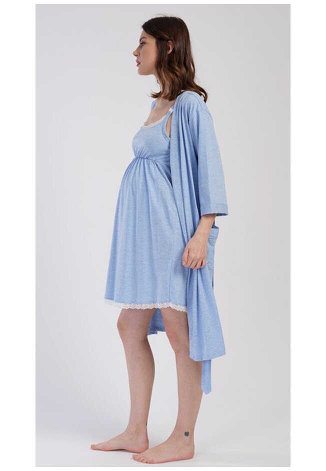 Compleu pentru alaptare, alcatuit din camasa cu bretele si halat cu maneci 3/4, buzunare si cordon.