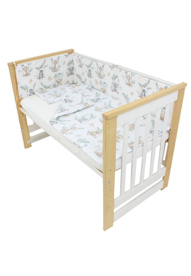 Lenjerie 4 piese, bumbac, Animalute pe leagan, 120x60 cm, alb