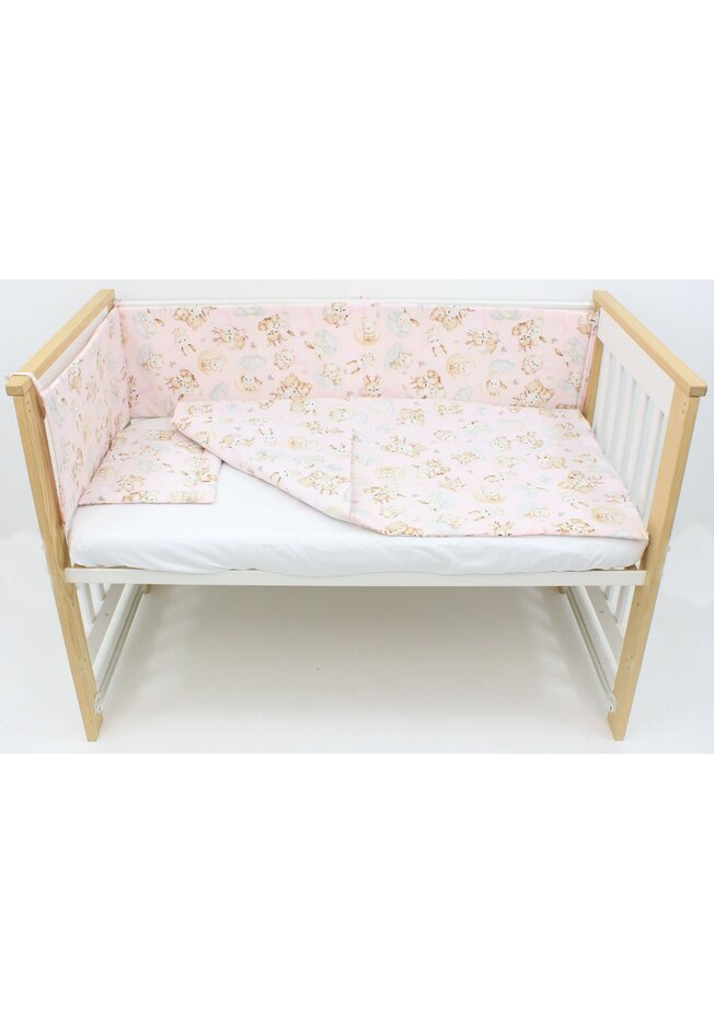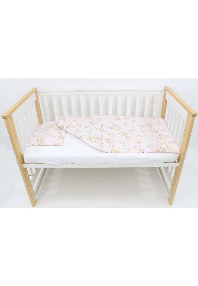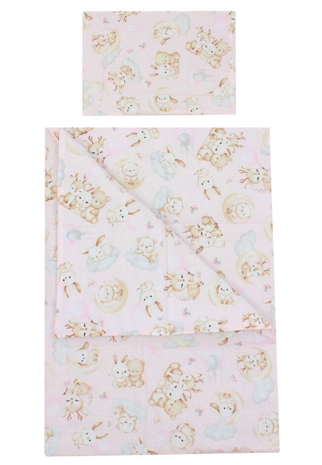Lenjerie 4 piese, bumbac, Caprioara Bambi si prietenii, 120x60 cm, roz