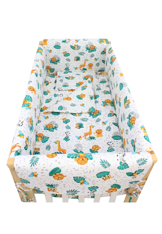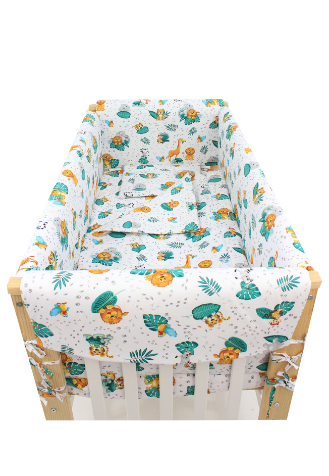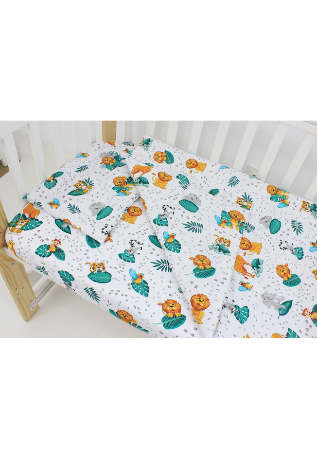 Lenjerie 7 piese, Prichindel, animalute in jungla, 120x60cm, multicolor