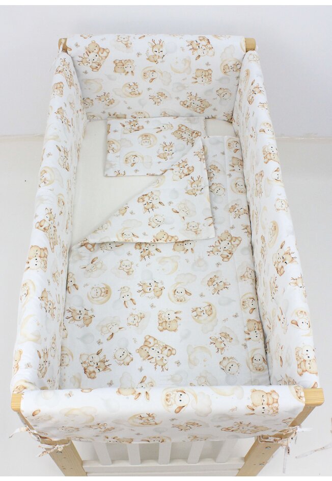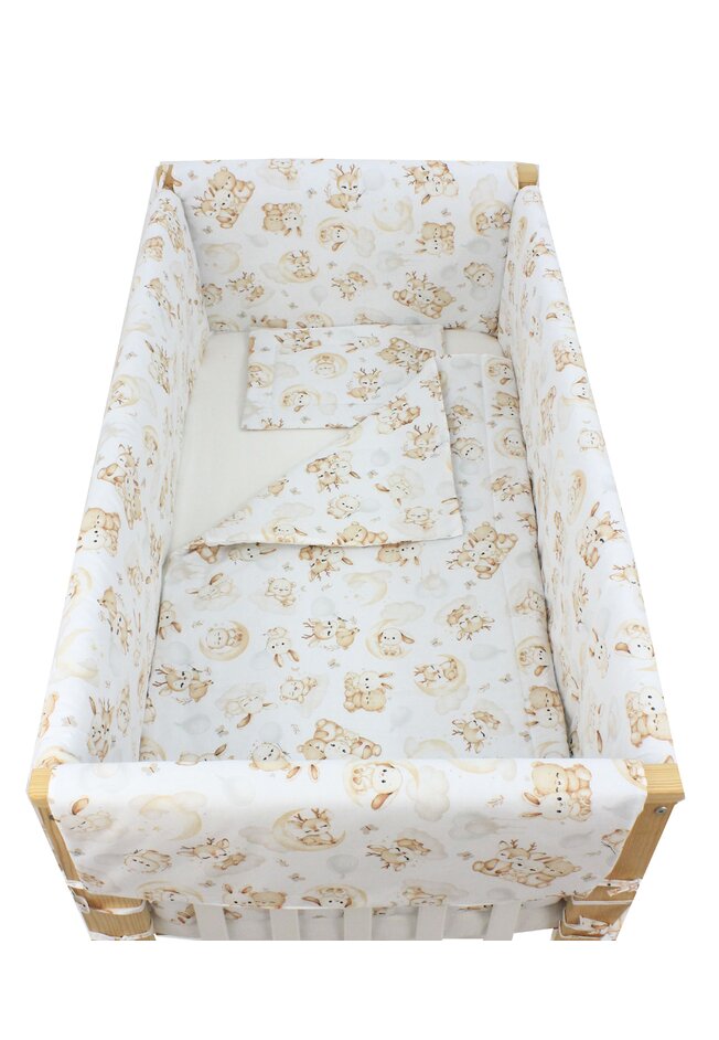 Lenjerie 7 piese, Prichindel, bumbac, Caprioara Bambi si prietenii, 120x60 cm, alb