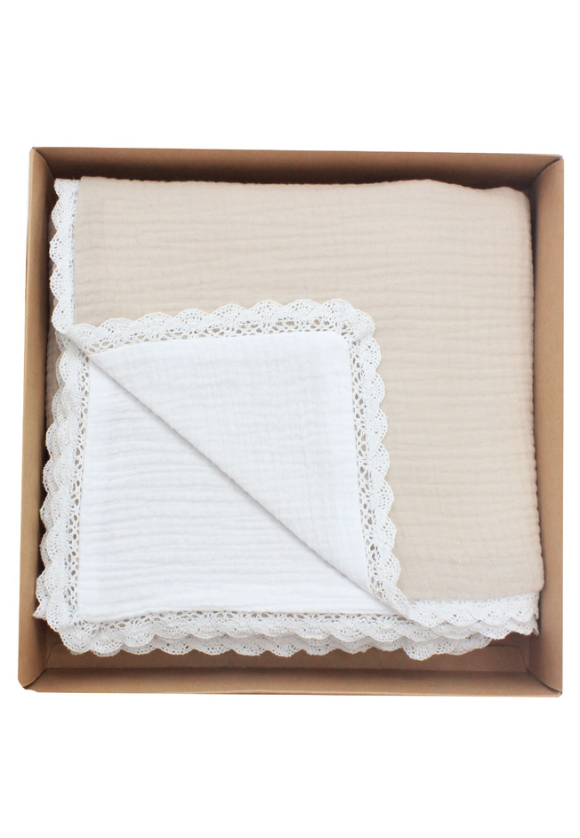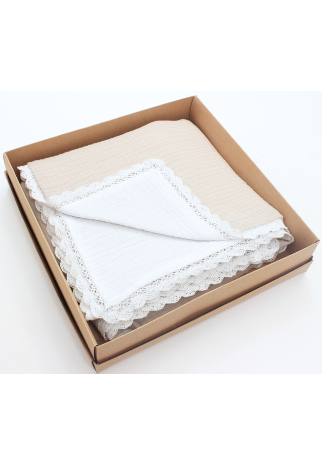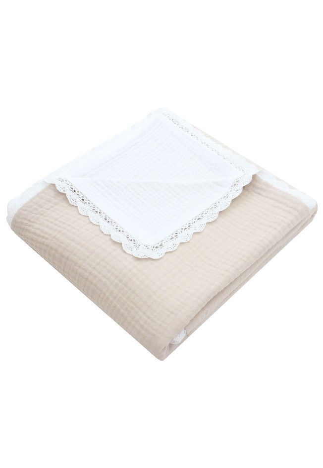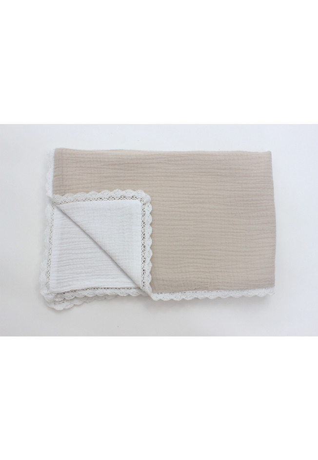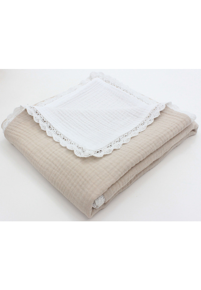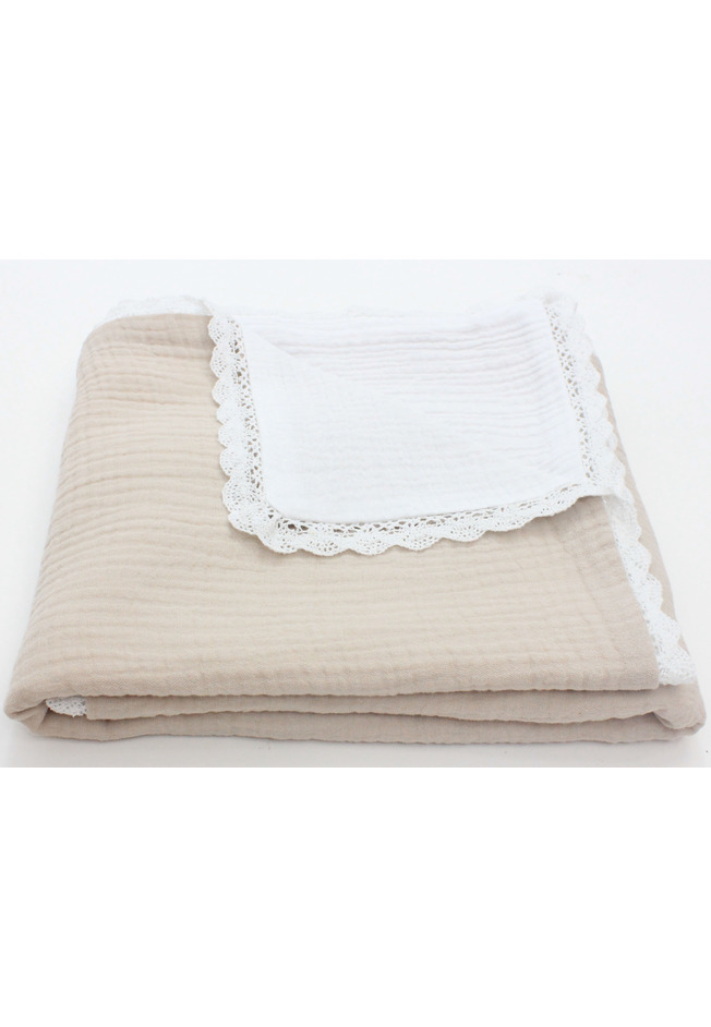 Paturica dubla muselina, Sanzi, cu dantela, crem, 100x80 cm