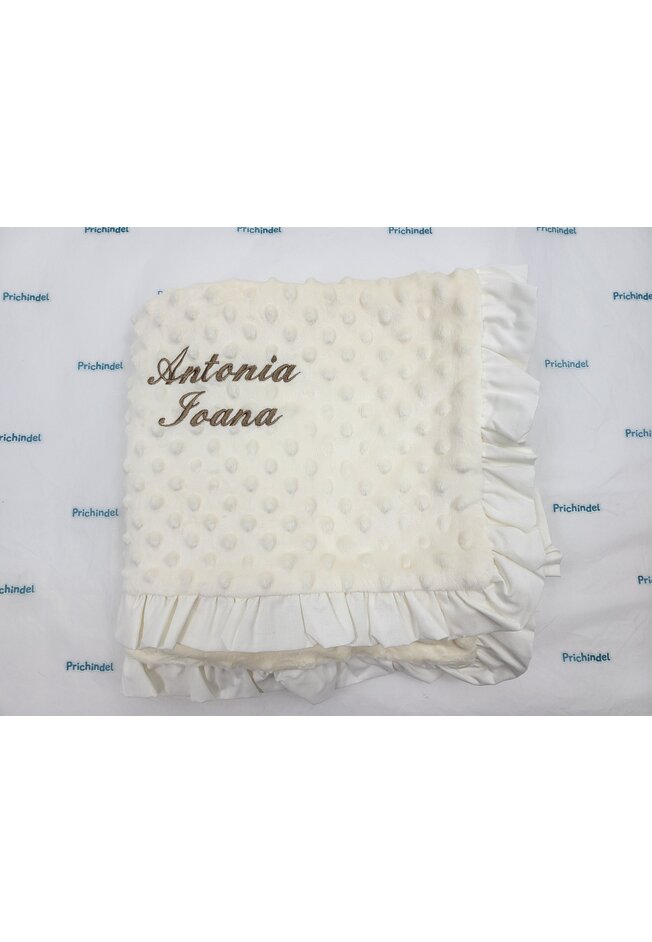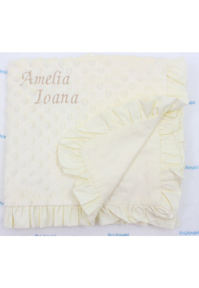 Paturica minky verso bumbac cu volanas, soft, crem, 100 x 80 cm