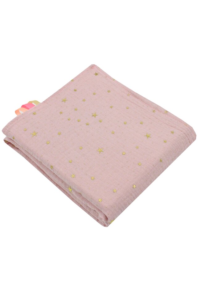 Paturica muselina, Metalic stars, roz, 75 x 100 cm
