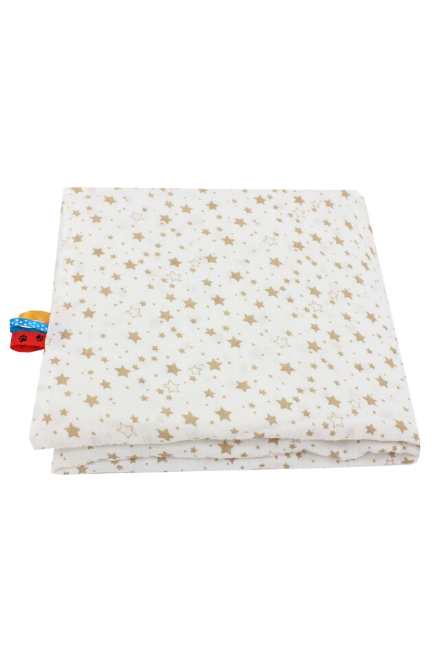 Paturica muselina, stelute bej, 80 x 100 cm, alb