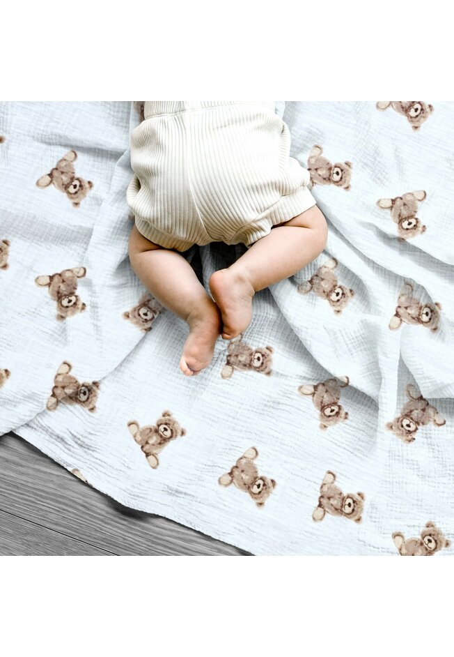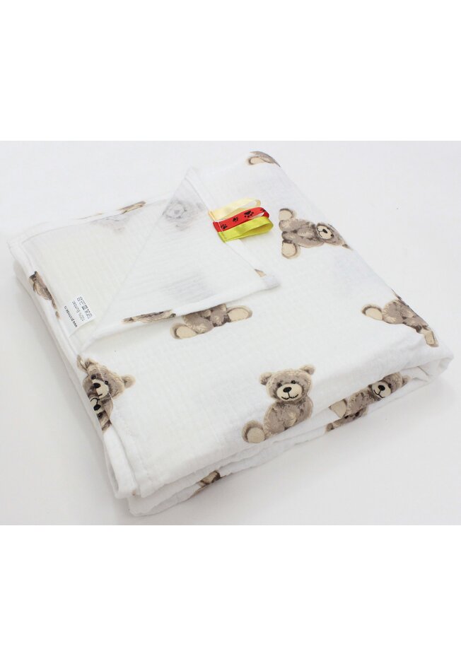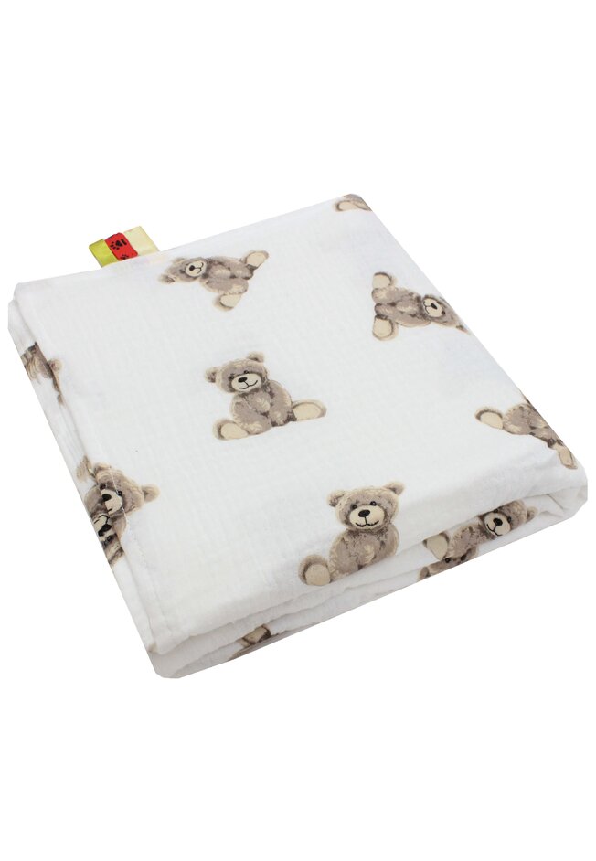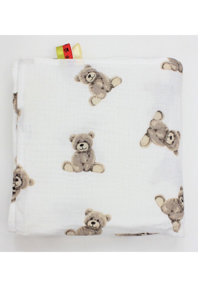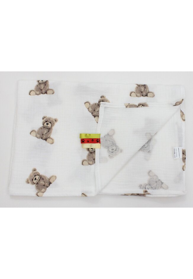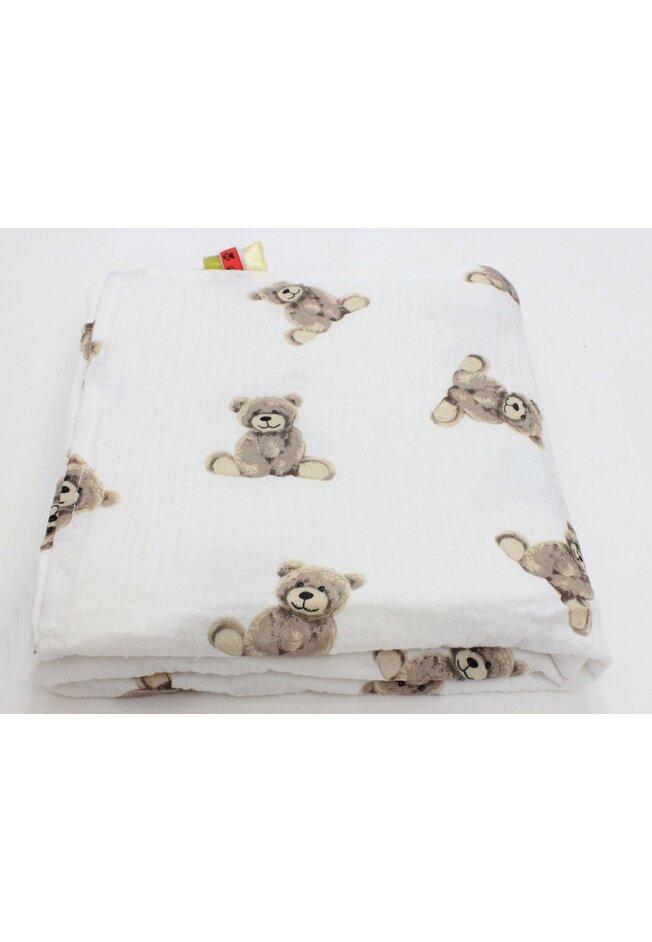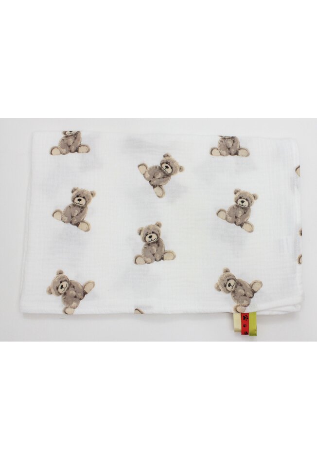 Paturica muselina, Ursuletul Martinel, alb, 80 x 100 cm