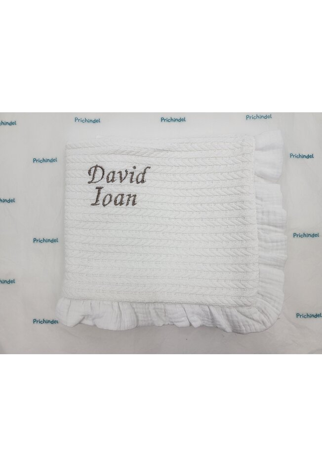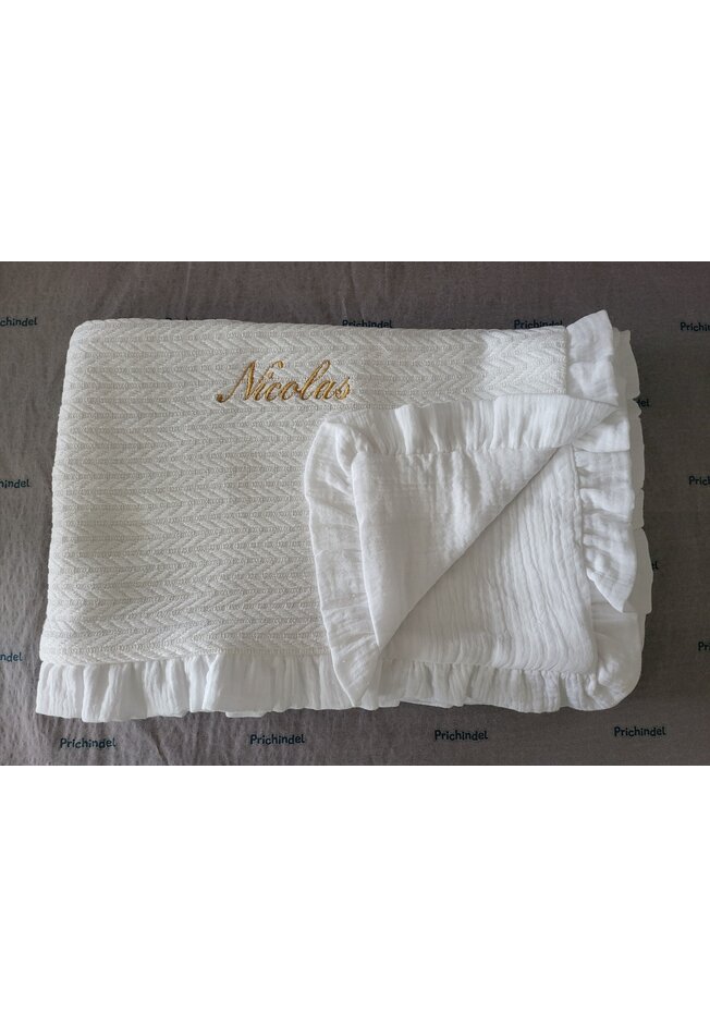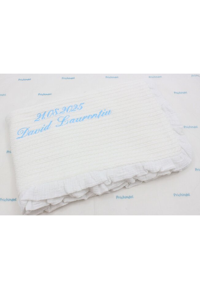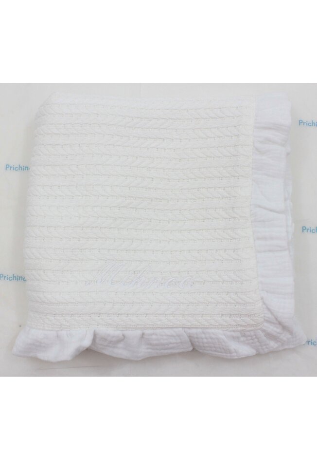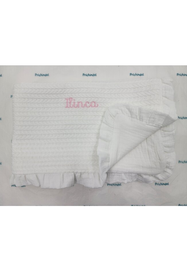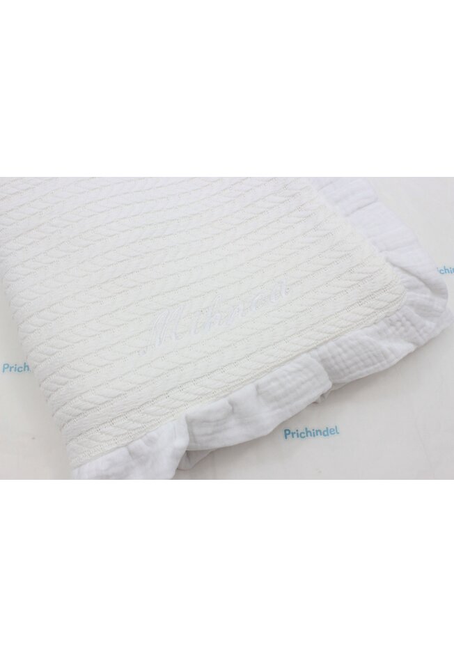 Paturica tricotata, Anna, verso muselina, cu volanas, alb, 100x80 cm
