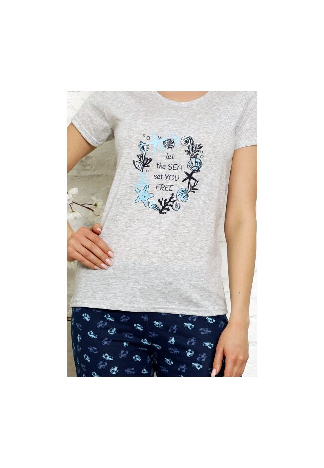 Pijama femei, pantalon scurt, Let the Sea set you Free, gri