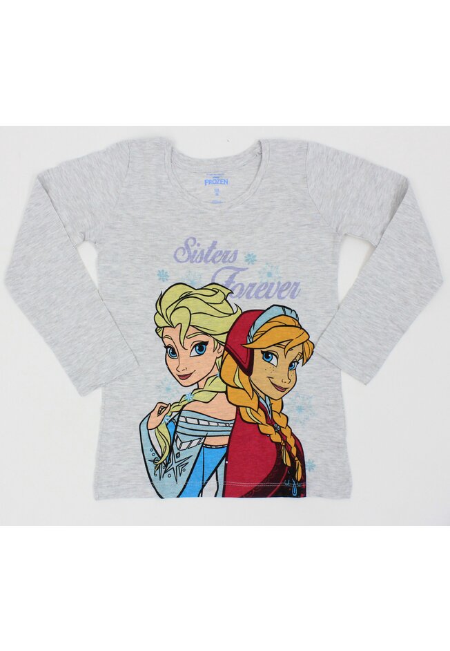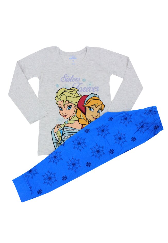 Pijama maneca lunga, bumbac, Sisters forever, Anna Si Elsa, gri