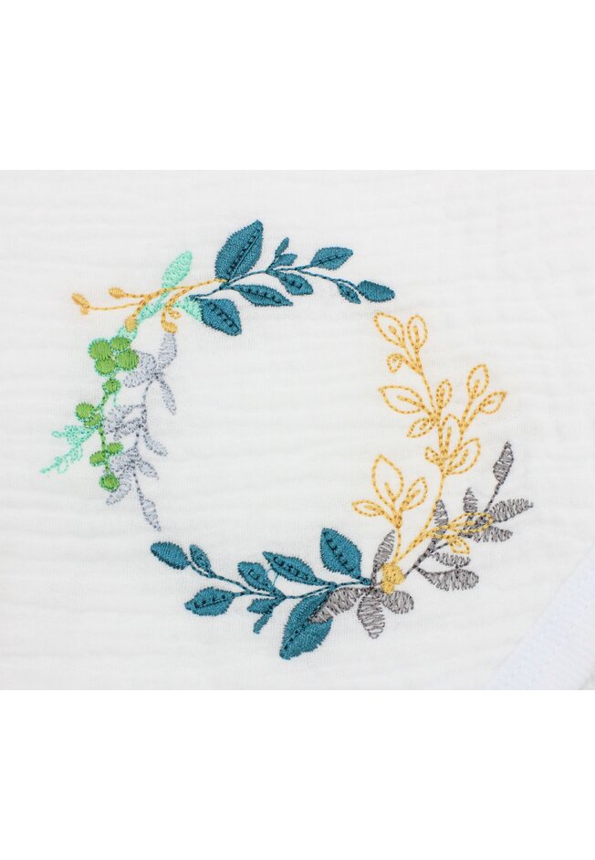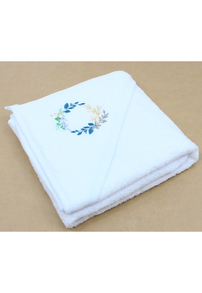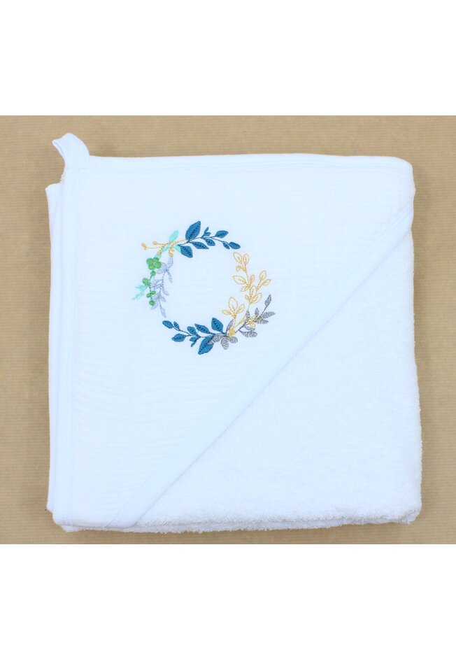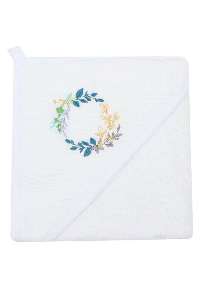 Prosop cu gluga, Frunzulite multicolore, bumbac si muselina, alb, 80 x 100 cm