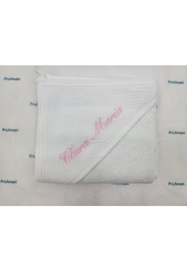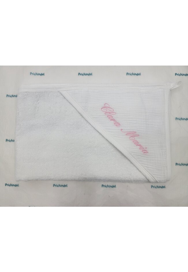 Prosop cu gluga, bumbac si muselina, alb, 80 x 100 cm