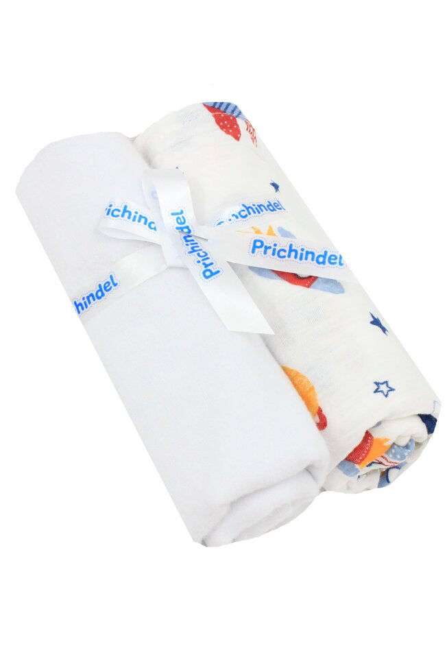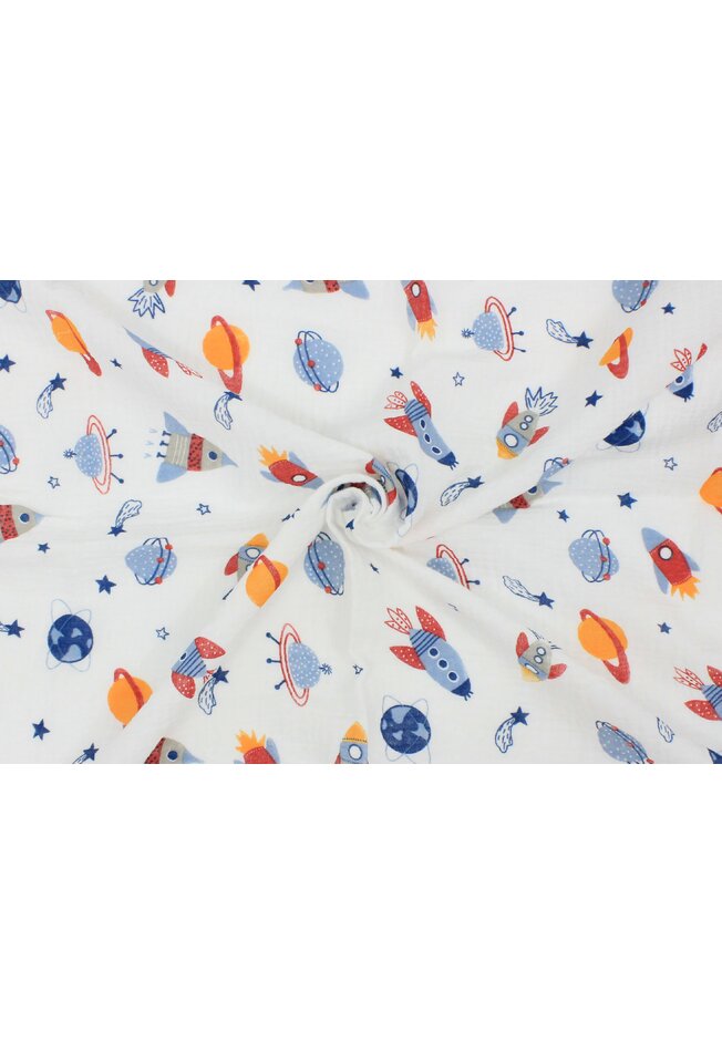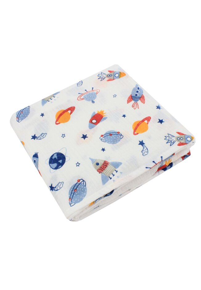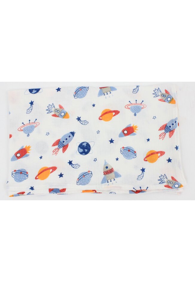 Set 2 scutece, muselina si finet, planete si rachete, alb, 80 x 67 cm
