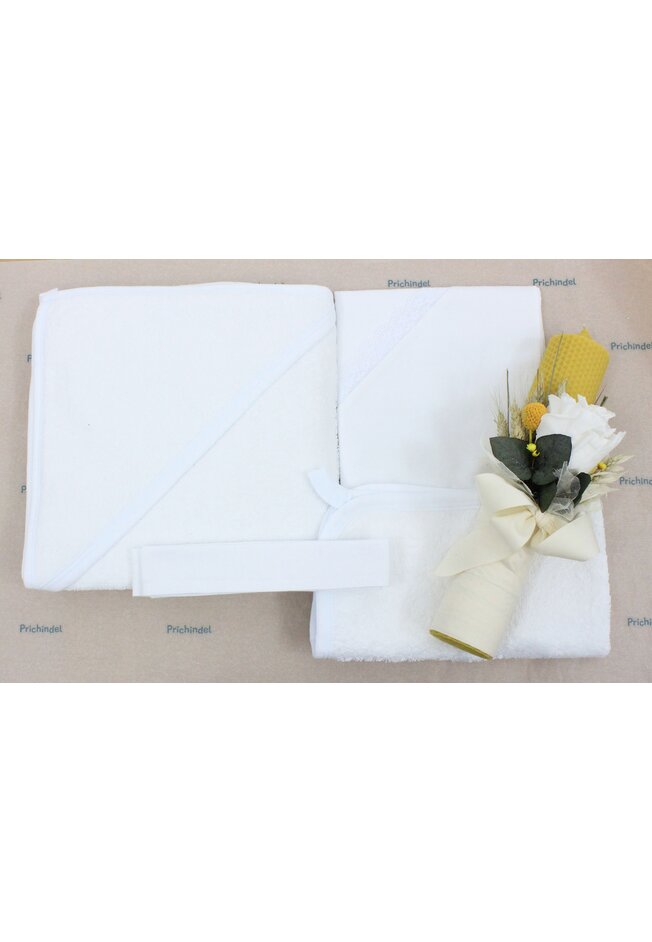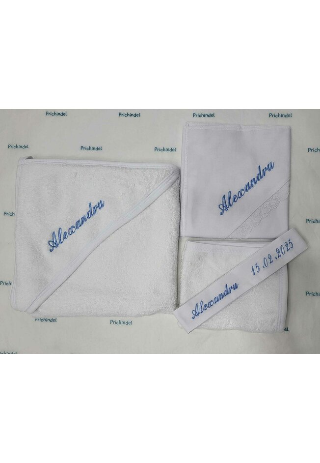 1. prosop cu gluga, 80x100 cm, absoarbe foarte bine apa, deci poate fi folosit ca prosop si dupa botez